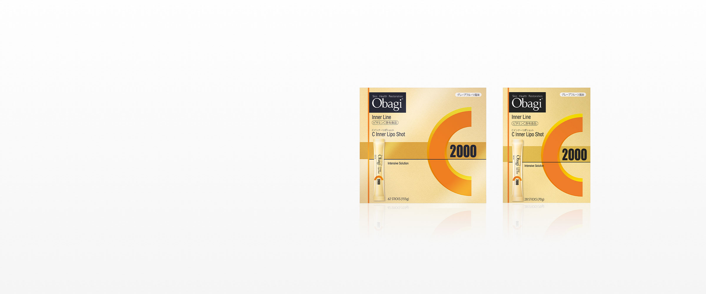 インナーライン オバジCシリーズから飲む高濃度ビタミンC。 ビタミンC含有食品 オバジC インナーリポショット 70g(2.5g×28本)(14日分) 3,780円(税込) ビタミンC含有食品 オバジC インナーリポショット 155g(2.5g×62本)(31日分) 8,370円(税込) お召し上がり方 ・1日2本を目安にお召し上がりください。 ・くちどけのよい顆粒状ですので、水なしでもそのままおいしくお召し上がりいただけます。 ・過剰に摂取することは避けて、1日の目安量を守ってください。 栄養成分表示 2本(5.0g)当たり エネルギー・・・・・・・・・・・9kcal たんぱく質・・・・・・・・・・1.3g 脂質・・・・・・・・・・0.03g 炭水化物・・・・・・・・・・1.4g 食塩相当量・・・・・・・・・・0.2g ビタミンC・・・・・・・・・・2000mg ビタミンB1・・・・・・・・・・10.0mg ビタミンB2・・・・・・・・・・5.0mg ビタミンB6・・・・・・・・・・5.0mg ナイアシン・・・・・・・・・・20mg コラーゲンペプチド・・・・・・・・・・1000mg 大豆ペプチド(コラプラス®)・・・・・・100mg カフェイン・・・・・・・・・・0mg ツボクサエキス ヒハツエキス 原材料名 コラーゲンペプチド(ゼラチンを含む)(フランス製造)、マルチトール、オレンジ果汁、デキストリン、大豆ペプチド、加工油脂、ウコンエキス、ツボクサエキス、ヒハツエキス/ビタミンC、HPMC、甘味料(アスパルテーム・L-フェニルアラニン化合物)、加工デンプン、ナイアシン、ヒマワリレシチン、ビタミンB1、香料、ビタミンB6、ビタミンB2 ※グレープフルーツエキスは入っておりません オバジが追求するビタミンCの可能性 2001年にオバジCセラムを発売して以来、ビタミンCの可能性を追求し続けてきたオバジから、“飲む高濃度ビタミンC”の提案です。 内側からハリとうるおいのある毎日を応援し、透き通るような美しさをサポートします。 オバジC インナーリポショットのこだわり オバジ独自のリポショットC※。 ビタミンCを1日(目安量)当たり2000mg配合 ※ビタミンC、ヒマワリレシチン、ウコンエキス、加工デンプン、加工油脂 美容サポート成分配合。 コラーゲンペプチド コラプラス※※大豆ペプチド ツボクサエキス ヒハツエキス モニターでいただいた声 味も良いし、良いことをしている感じがする。 すぐに溶けてそのまま飲めるので楽。味もおいしい。 手軽につづけられそう。 ※2023年2-3月 自社調べ アンケート n=15 毎日つづけてほしいから飲みやすさにもこだわりました 水なしでも飲める顆粒タイプ 口の中でさっと溶けて飲みやすい顆粒タイプです。水なしでもそのままお召し上がりいただけます。 グレープフルーツ風味 飲みつづけやすいおいしい味を実現しました。 1日2本のスティックタイプ 持ち運びにも便利なスティックタイプ。朝起きて1本/夜寝る前に1本など、お好きなタイミングで服用できます。 ノンカフェイン