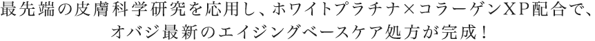 エイジングベースケア エイジングケア:年齢に応じた潤いとハリのケア ホワイトプラチナ:白金(基剤)、ビルベリー葉エキス、チャ葉エキス、ヒアルロン酸Na(保湿成分) プラチナイズドEX:次世代型プラチナ(白金:基剤)、ヒアルロン酸Na(保湿成分) コラネット、コラプラス:加水分解ダイズタンパク(保湿成分) コラサイクル:アッケシソウエキス(保湿成分)